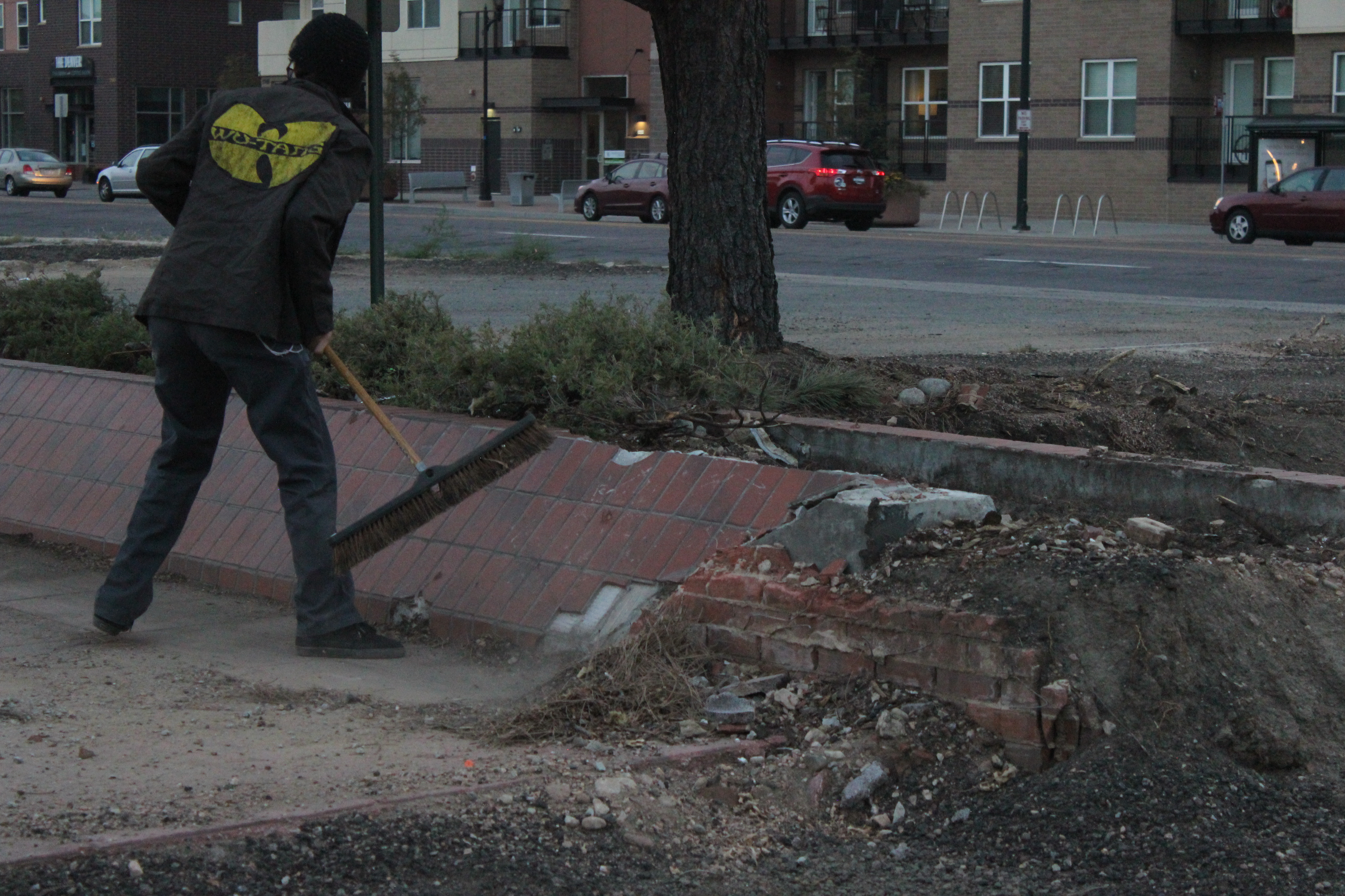 Sweeping debris. Weird that they left the banks but took down the building..